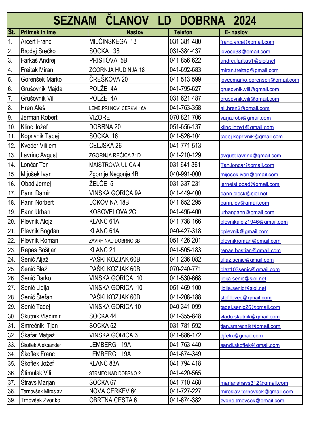 SEZNAM ​​ČLANOV ​​LD​​ DOBRNA ​​V​​ LETU ​​2020
